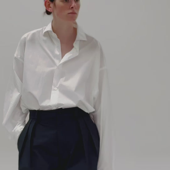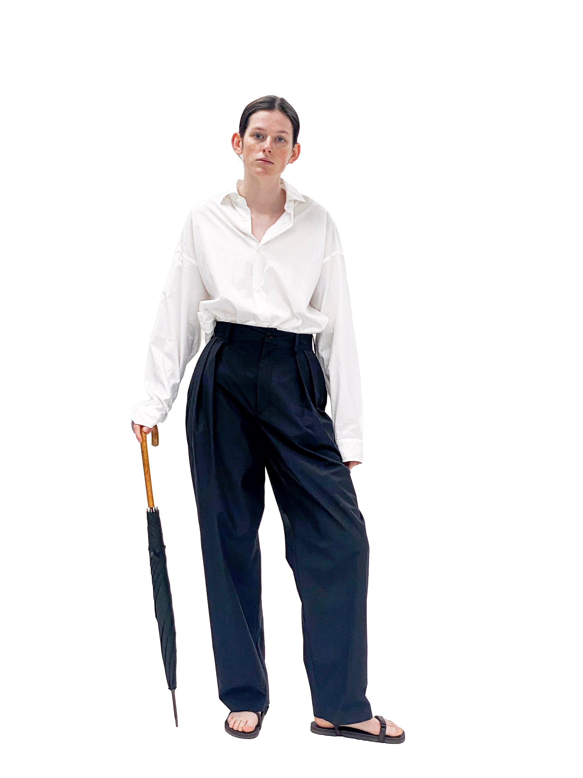 That’s because this shirt uses Suvin cotton, long fiber with 200-count (which is very fine). The broadcloth fabric is double-thread processed and treated with UV protection, is cool to the touch, and can retain shape. When high-quality broadcloth comes with functions, you’ll want to snag more than one. This has been tailored for an oversized finish.