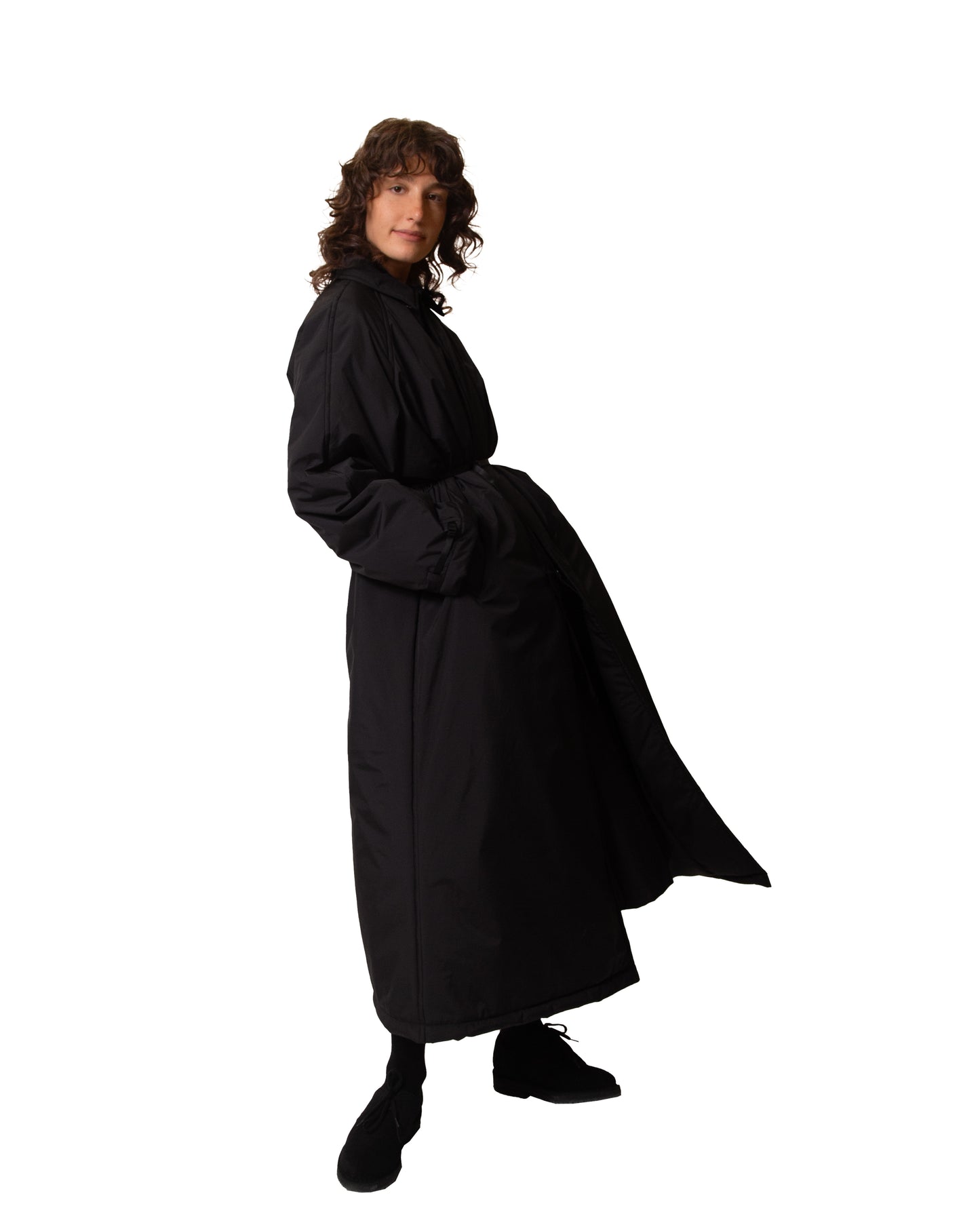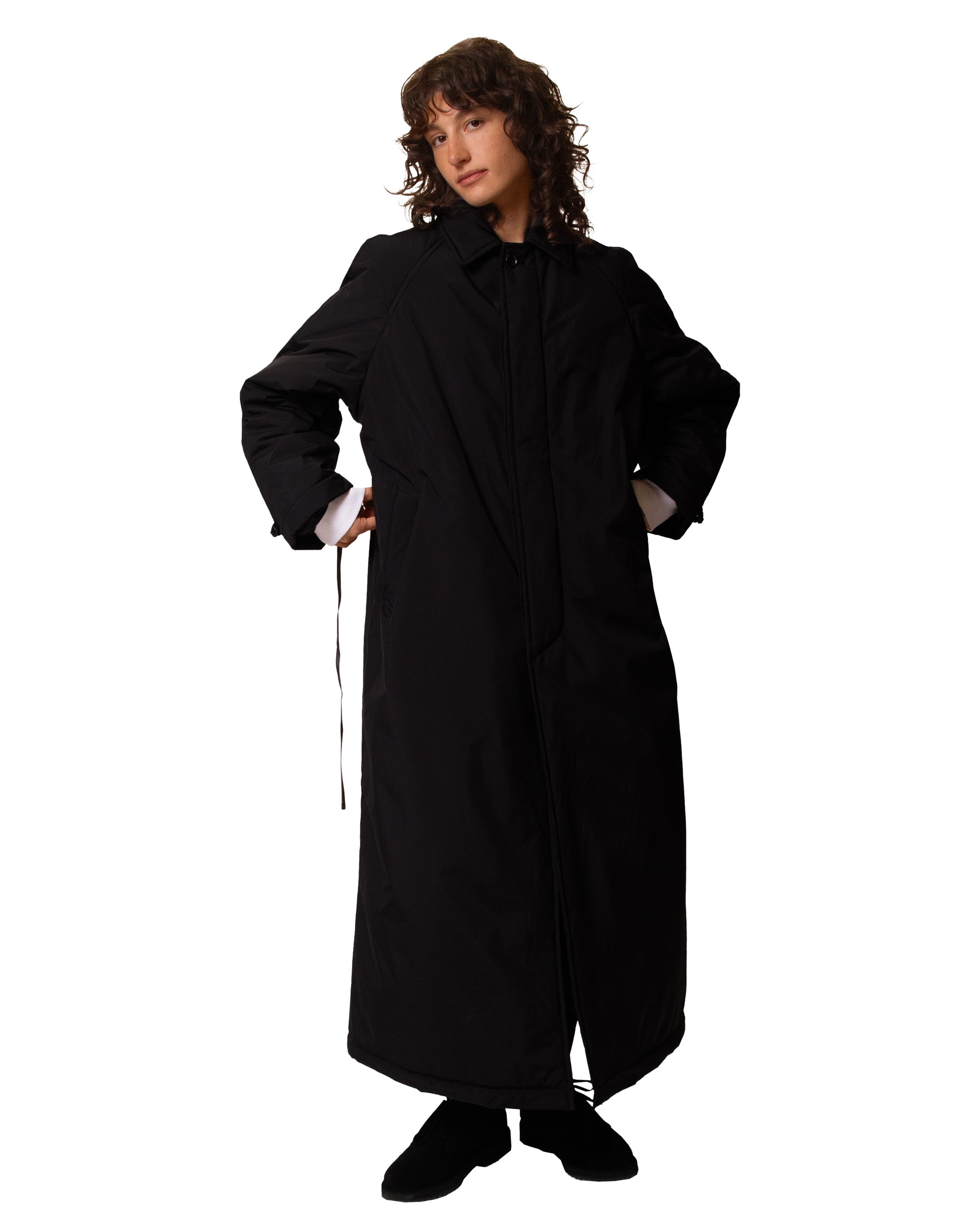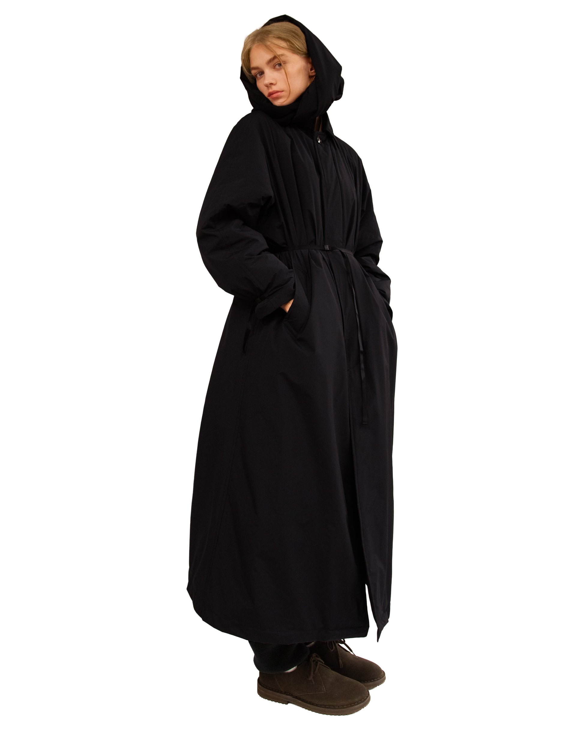 Wear the coat as is to show off its fine pencil line cut. And since it comes with a belt, try another look and use it to cinch the coat at the waist. Have fun with the various possible styles.