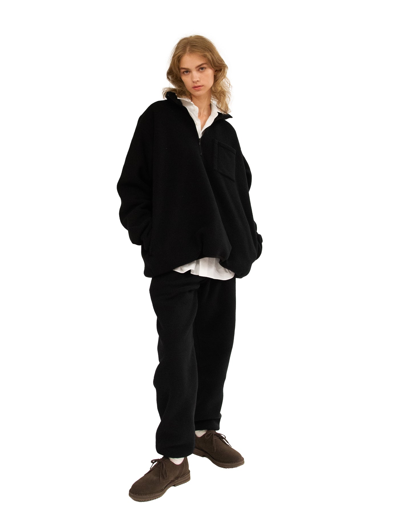 You can tell the difference between the two styles of fleece pants from how these two wear them. Thank you, Sofia and Tobias. On the left, you see the sweatpants-style fleece pants. On the right are the parachute pants fleeces. Both have their own appeal.