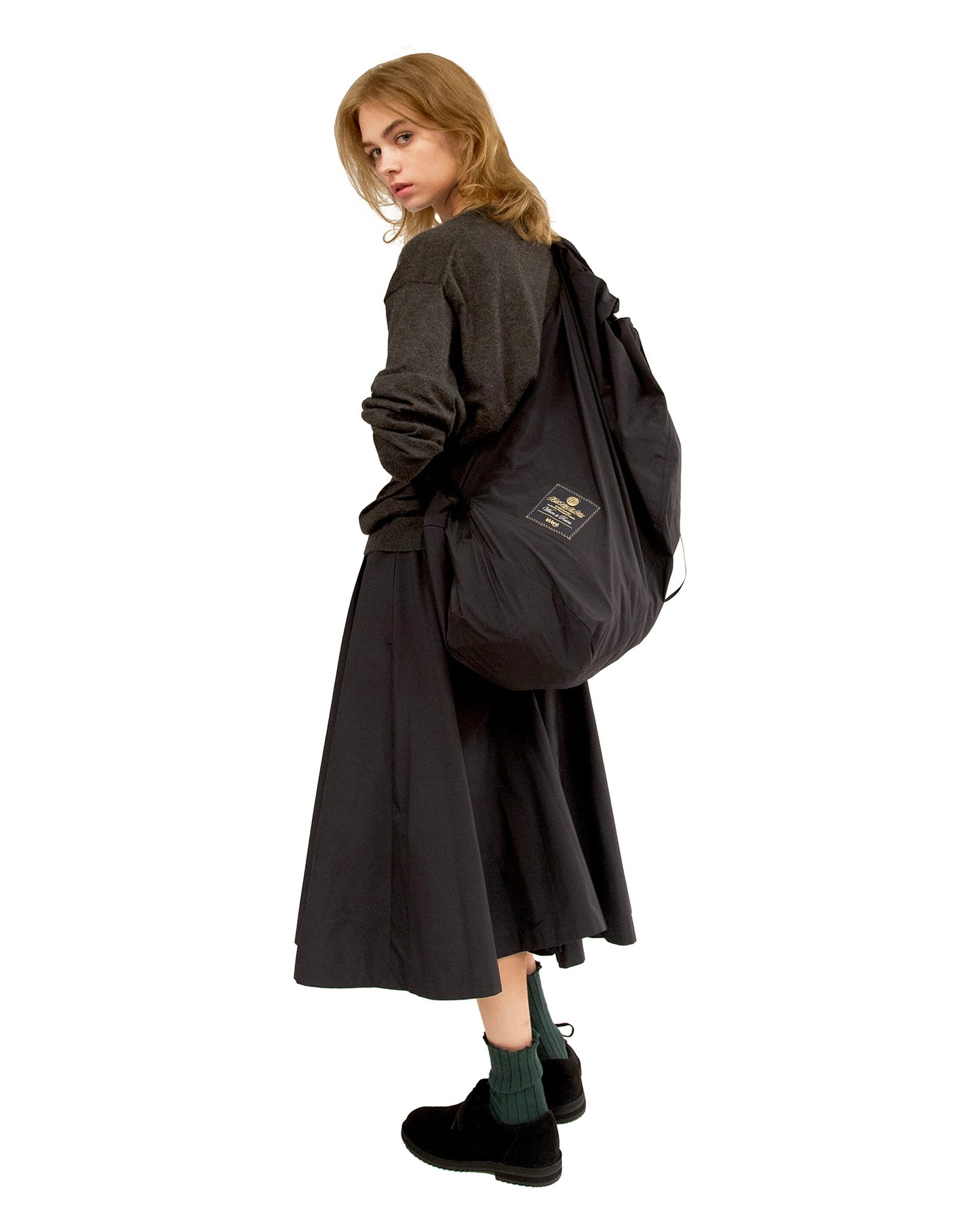 Here is one piece that will 100% satisfy such a day. A circular skirt using a generous amount of the eVent® material. When falling upon the slender A-line, even raindrops transform into jewels. Like a scene from a musical masterpiece, you will want to start dancing. Don the Bbb shoes, to take those steps.